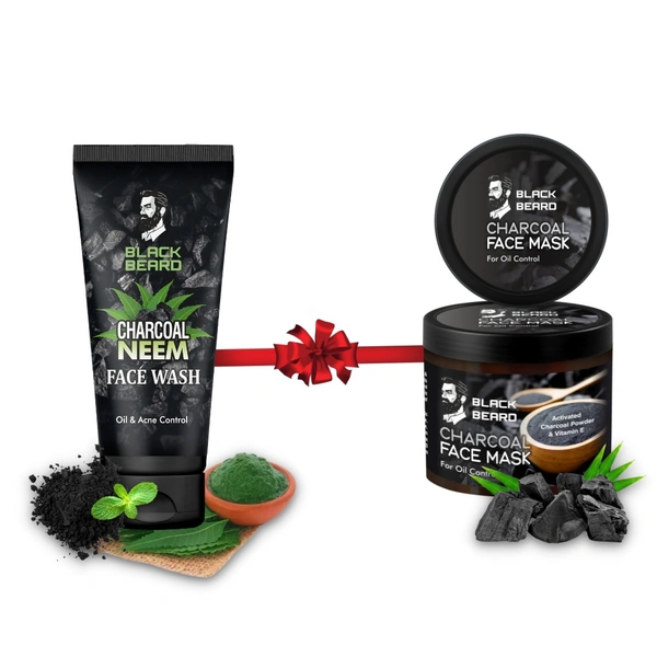 Black Beard Charcoal Neem Face wash 100ml & Charcoal face Mask , skin care combo For Men.