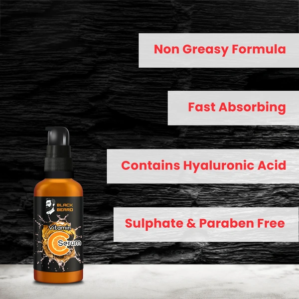 BLACK BEARD VITAMIN C FACE SERUM, 30ML 99% NATURAL SERUM FOR MEN AND WOMEN BOTH VITAMIN C FACE SERUM HYALURONIC ACID FACE SERUM